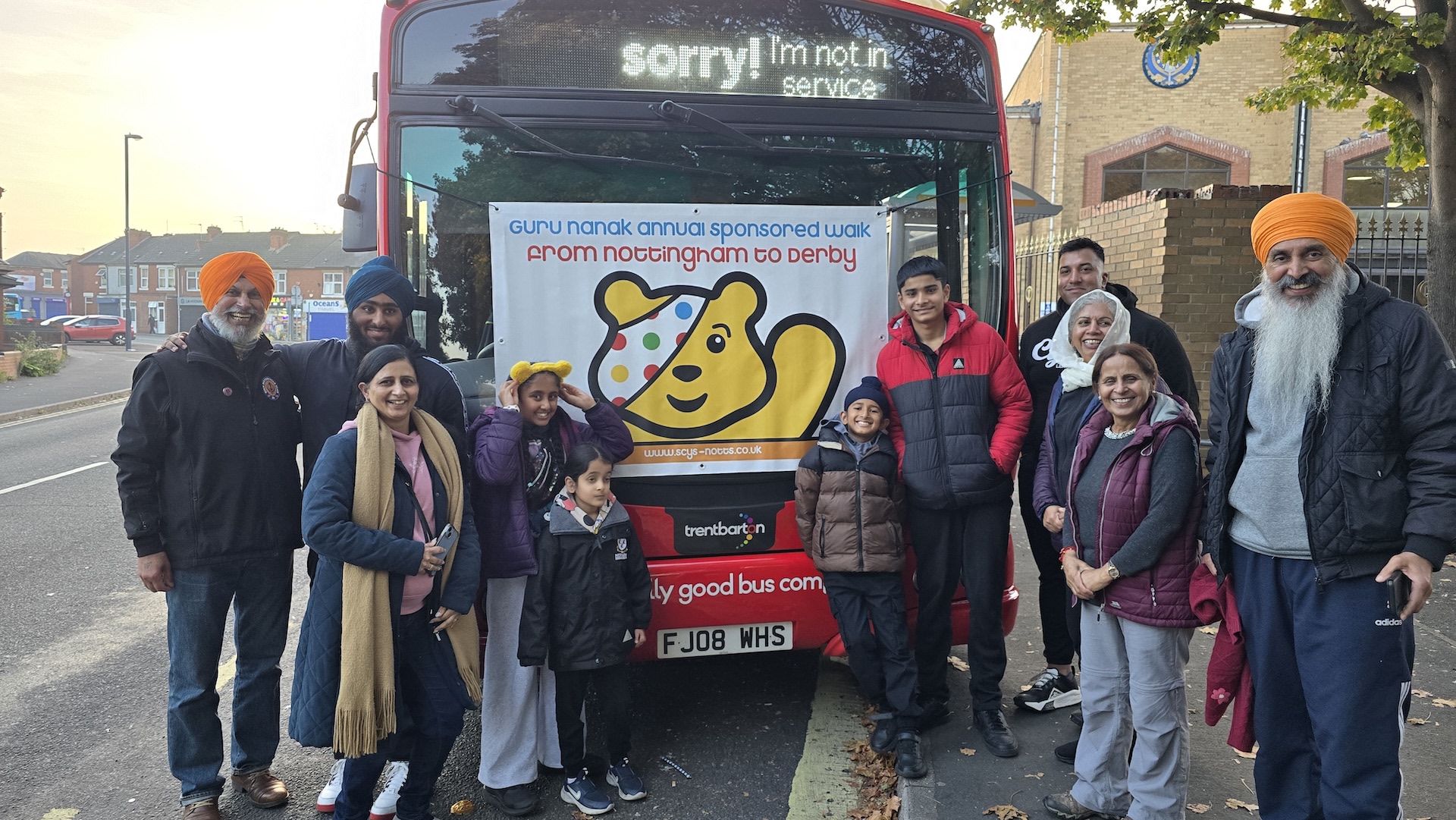 On Sunday 12th October 2025, around 100 people of all ages walked approx 18 miles from Nottingham to Derby to raise money for BBC Children In Need, Nottinghams Khalsa Punjabi Schoo & Marfans Trust. A big thank you to all involved!